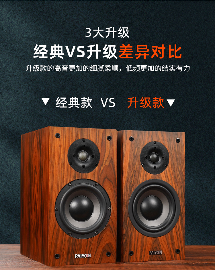 PAIYON派扬四号2.0无源音箱hifi高保真发烧级6.5木质家用书架音响