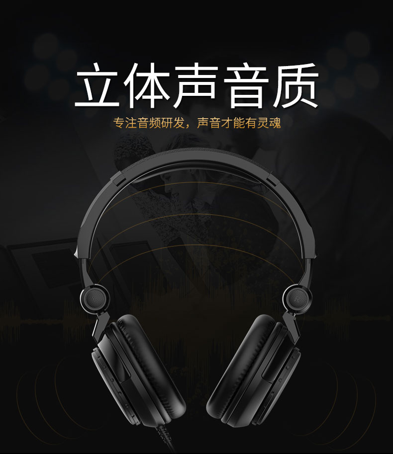 耳机头戴式不带麦手机听歌声卡专用全封闭有线耳麦 长线